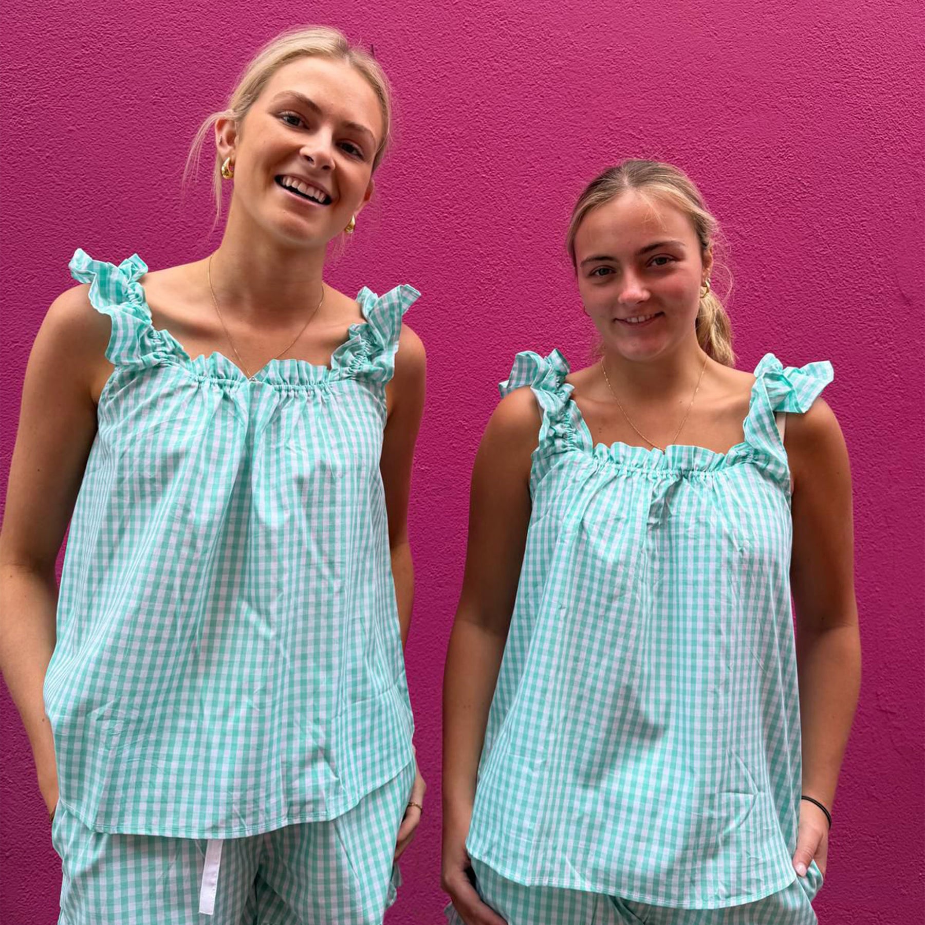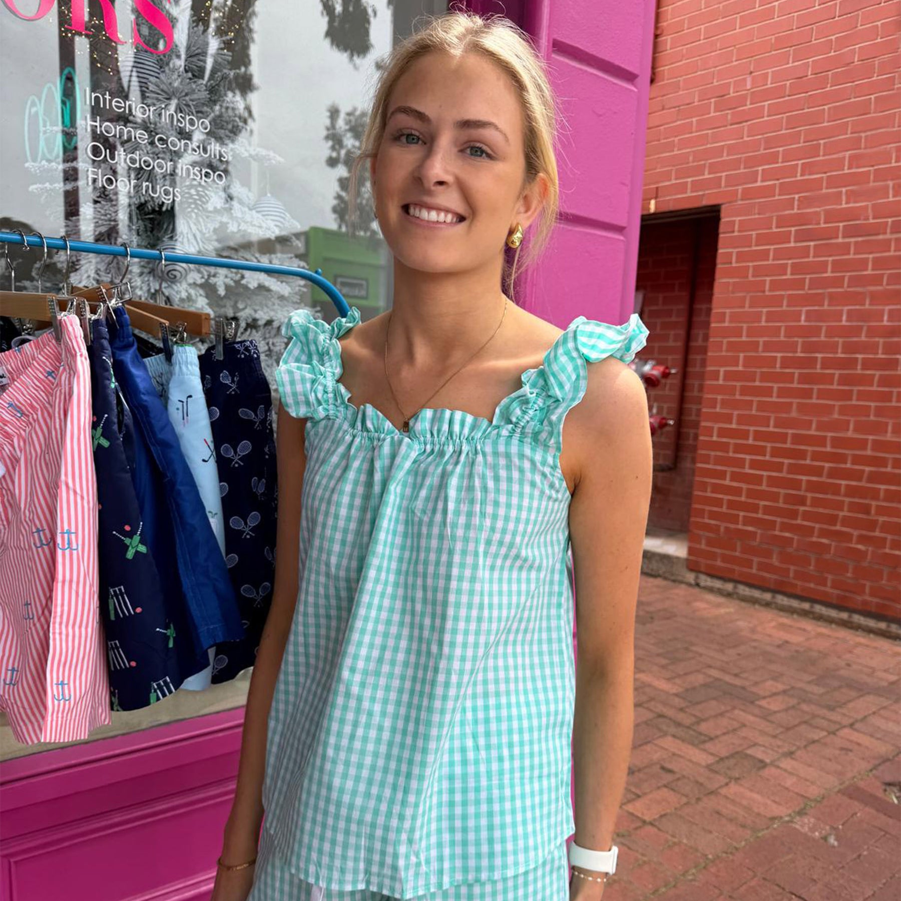 Women's Hepburn Gingham Mint Frill Tank PJ Set